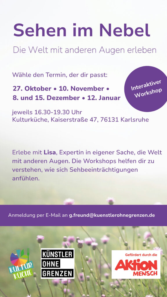 In diesem Workshop erlebt ihr, wie es sich anfühlen kann eine Sehbeeinträchtigung zu haben und wie man gut damit umgehen kann.